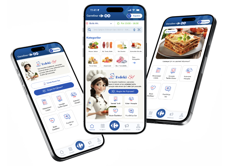 We have added a digital food, health and food assistant to CarrefourSA’s mobile application. The application, which includes features such as recipes, food recognition from images, listing the ingredients of the meal, sorting the necessary ingredients and adding them to the basket, calorie calculation, meal planning, and allergy tracking, is added to the application as a digital assistant via an LLM-based AI model. We will see it in the CarrefourSA application in the markets very soon.