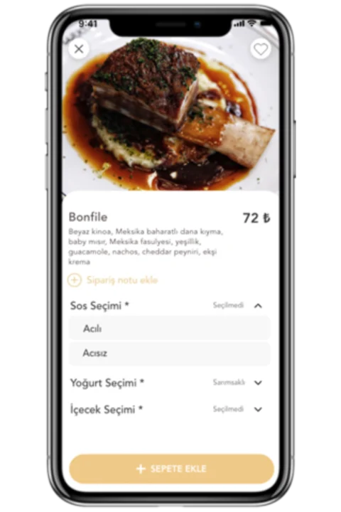 La plataforma permite que distinguidos restaurantes lleguen a sus clientes con métodos de entrega regulares y especiales. Con esta plataforma, se pueden proporcionar servicios de catering además de pedidos instantáneos de comida. La interfaz de la aplicación y los paneles de administración fáciles de usar se desarrollaron desde cero y la aplicación se convirtió en una de las entradas más comentadas de Turquía en las tiendas de aplicaciones.