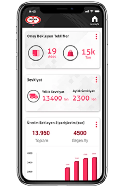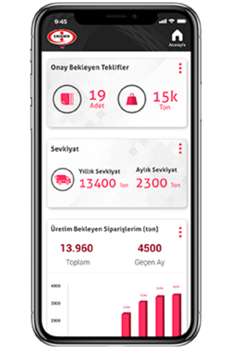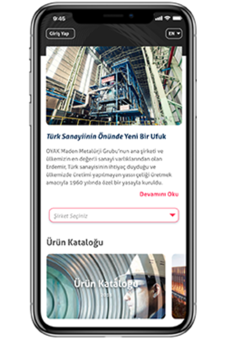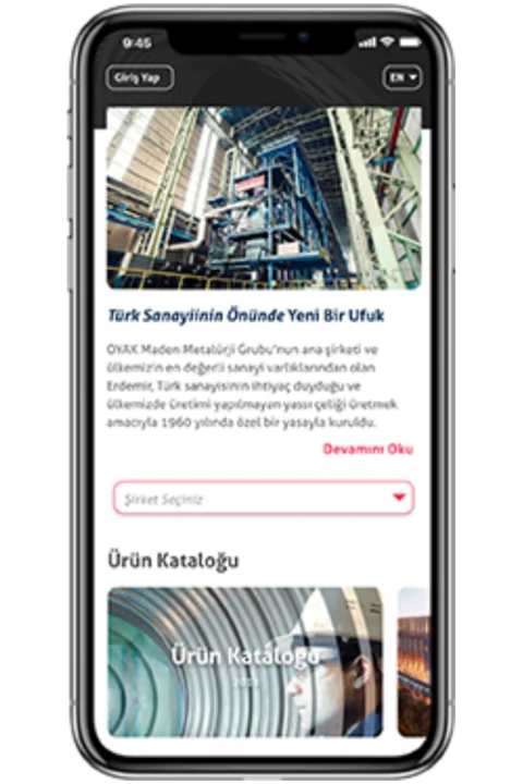 Brindamos aplicaciones móviles y soluciones web de última generación para las empresas de OYAK Metallurgy. Nuestras soluciones digitales permiten a los usuarios corporativos, clientes y operadores realizar sus procesos comerciales en cualquier momento y en cualquier lugar.