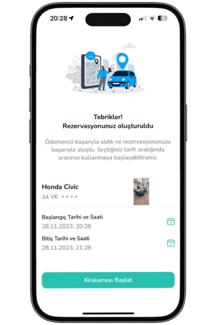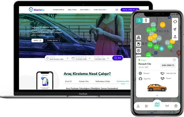 The project includes user-to-user and organization-to-user car rental services. The aim is to monitor the use of the vehicle and all data related to the vehicle through the user’s key-independent application, thanks to telemetry devices. The platform allows all users to rent out their vehicles through the mobile application and generate income. The user can also find the closest and most suitable vehicle with map integrations, rent the vehicle from any location with online payment and drop it off at any location with an instant reservation method.