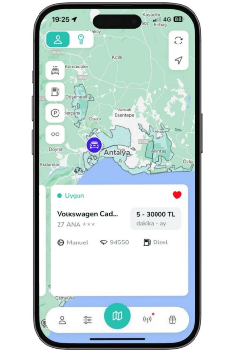 The project includes user-to-user and organization-to-user car rental services. The aim is to monitor the use of the vehicle and all data related to the vehicle through the user’s key-independent application, thanks to telemetry devices. The platform allows all users to rent out their vehicles through the mobile application and generate income. The user can also find the closest and most suitable vehicle with map integrations, rent the vehicle from any location with online payment and drop it off at any location with an instant reservation method.