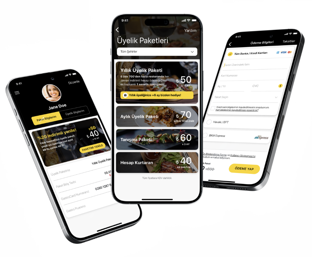 The membership management and payment interface offers a clean, intuitive UI designed to guide users through selecting, reviewing, and purchasing subscription packages with ease. From personalized profile details to clear package options and transparent pricing, every screen is optimized for clarity and quick interaction. The use of strong visual hierarchy, contrasting colors, and micro-interactions enhances the user experience, while the backend infrastructure supports secure payment integrations (credit card, EFT, BKM Express), dynamic campaign logic, and real-time data validation. This blend of thoughtful UX design and robust development ensures a smooth and trustworthy flow from selection to payment.