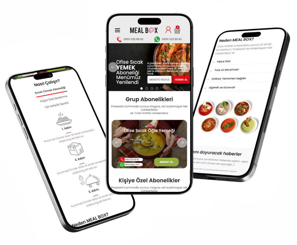 By changing the face of the Meal Box website using newer technologies and design innovations, the users are exposed to a better experience. New designs were used for different product groups, without breaking away from the overall compatibility. Special screens were also prepared to ensure all mobile users share the same experience.