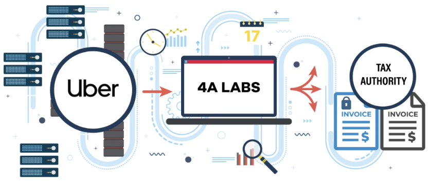 4A Labs is the exclusive Fin-Tech solution provider of UBER delivering services in Tax Id Enrollment, Invoice Generation, Invoice Integration with Tax Authorities in various countries. We provide reporting, reconciliation, electronic-signature and ERP/MRP integrations of UBER financial operations for regulated government and tax authorities.