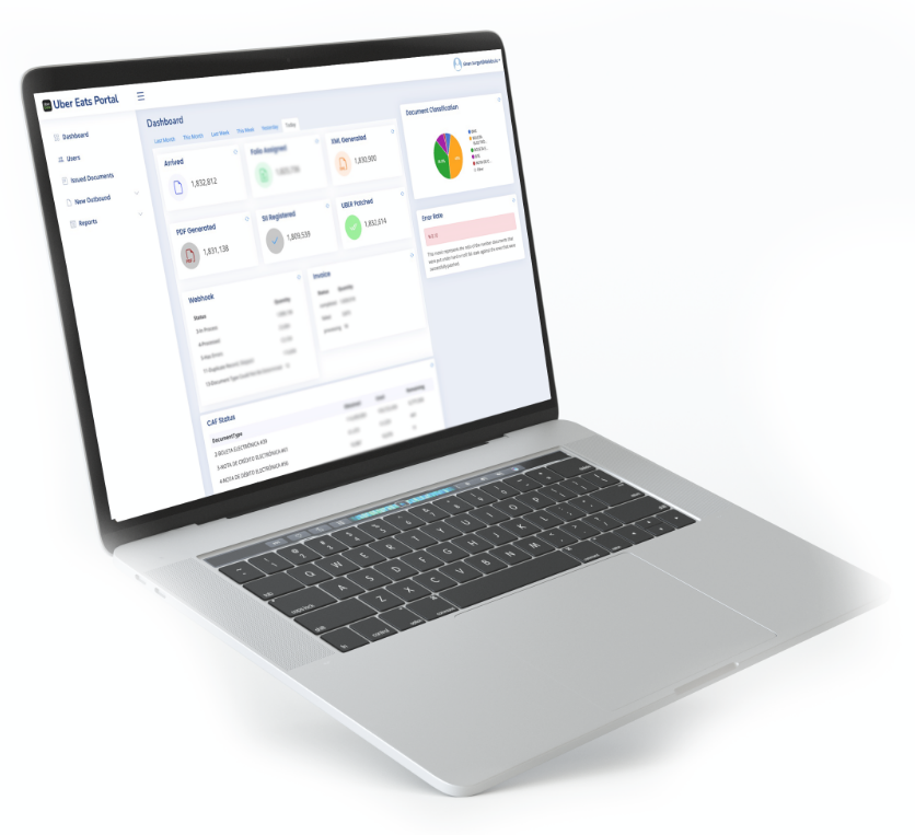 The portal also includes advanced reporting features, allowing users to generate daily, weekly, monthly, and yearly transaction reports. Users can analyze specific invoice types and track the real-time statuses of invoices being processed.